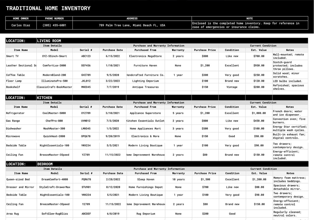 Las compañías de seguros exigen un inventario detallado de la vivienda para garantizar un procesamiento preciso y eficiente de las reclamaciones en caso de pérdida o daño. Esta documentación detallada ayuda a verificar la propiedad, lo que reduce las disputas y acelera el reembolso.